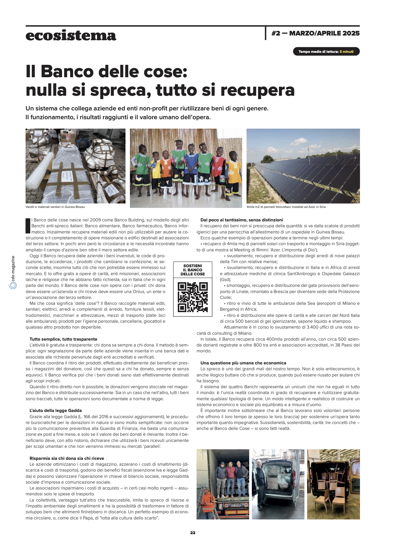Anche quest’anno vi chiediamo un gentile contributo per aiutarci nelle numerose operazioni effettuate: mai come quest’anno l’opera di Banco delle Cose - Banco Building è stata presente sul territorio e ha gestito numerosissime operazioni, in Italia e in tutto il mondo, aiutando centinaia di Onlus ed organizzazioni a scopo umanitario.